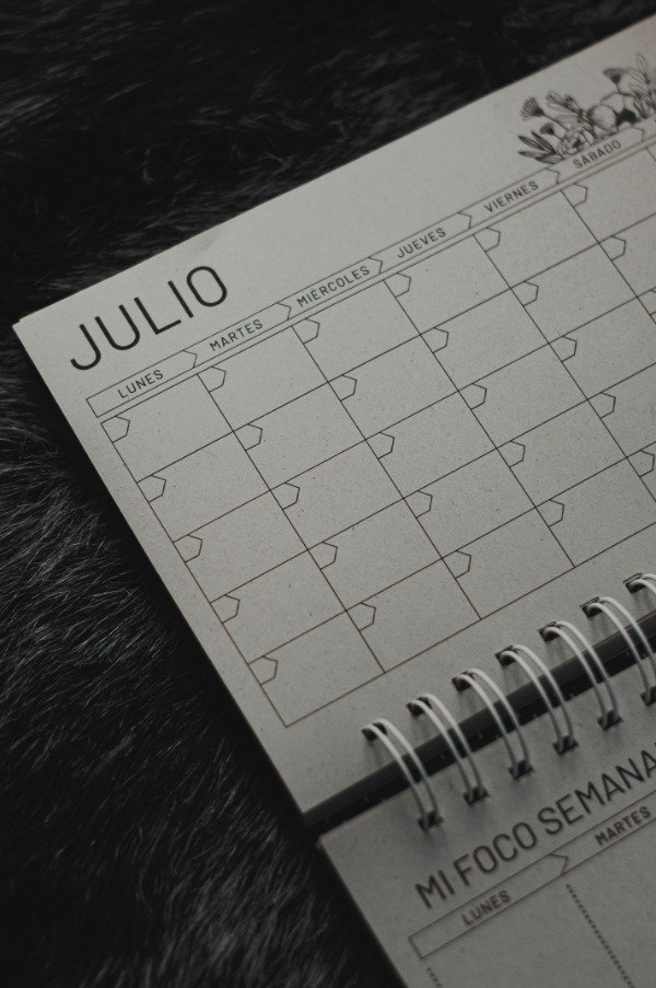 Agenda anual. Incluye calendario organizador por mes, planificadores y stickers. Hecho de papel 100% reciclado con un acabado artesanal.