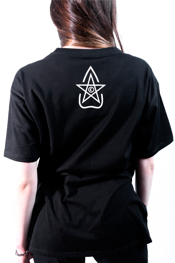 Remera con diseño de estampa blanca de la línea Dark Necro. Sin género, pensada para todx weirdo que desee abrazar la oscuridad. Inspirado en las leyes universales & The Crow, book & Film.