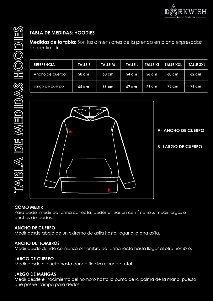 A continuación te mostramos las tablas de talles de Hoodies & Remeras.